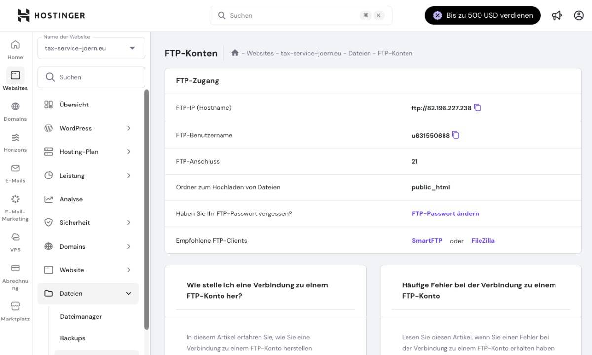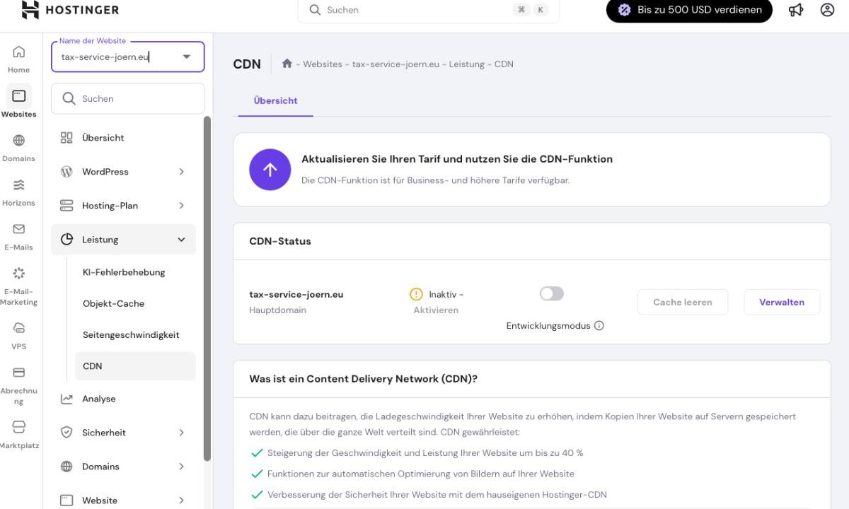 - Manche Menüstrukturen im hPanel könnten intuitiver sein: Einige erweiterte Einstellungen sind etwas versteckt und könnten sichtbarer integriert werden.