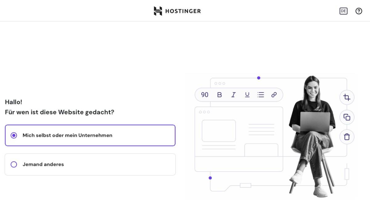 Das WordPress Hosting von Hostinger empfehle ich uneingeschränkt und ausdrücklich auch Einsteigern. Denn der Anbieter ermöglicht die Erstellung von WordPress-Websites im Handumdrehen. Bei der Einrichtung greift dir der – im Vergleich zu anderen Anbietern – stark abgespeckte KI-Wizard unter die Arme.