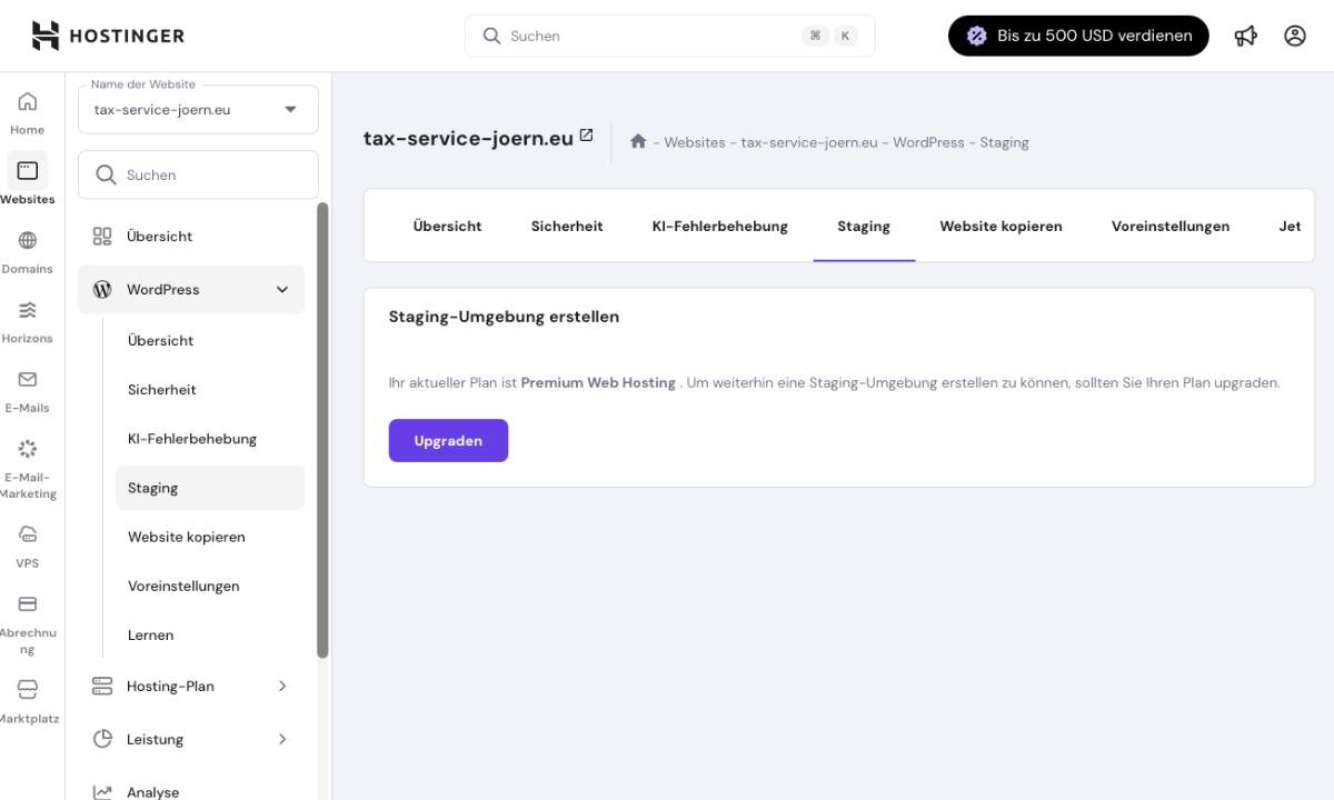 - Staging & tägliche Backups in höheren Tarifen: Für wachsende Projekte bringt Hostinger praktische Profi-Features direkt mit.