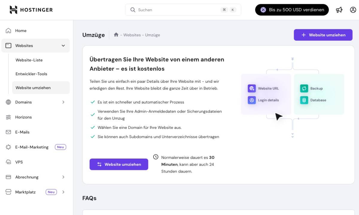 - Kostenloser Website-Umzug