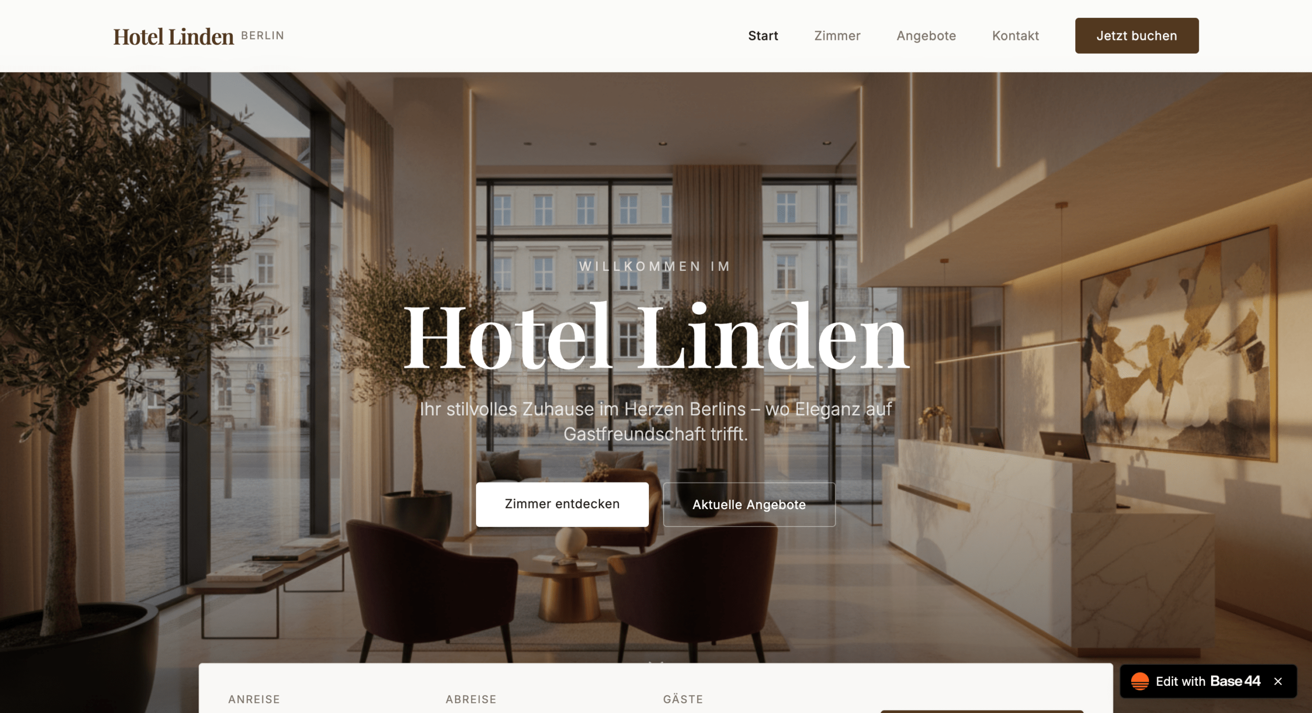 Für viele Hotels reicht eine klassische Website mit Startseite, Zimmerübersicht, Bildergalerie, Kontaktmöglichkeiten und ggf. einem kleinen Buchungstool völlig aus. Solche Seiten kannst du mit einem Homepage-Baukasten oft schon ab wenigen Euro im Monat selbst erstellen.
