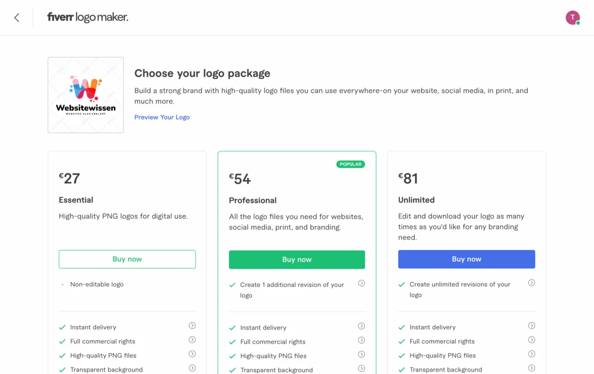 Die meisten Anbieter liefern Logos in PNG (für Web) und JPEG. Für Druck und professionelle Anwendungen sind SVG oder PDF wichtig, die oft nur in teureren Paketen enthalten sind. Achte vor dem Kauf darauf, welche Formate im Preis enthalten sind, damit du das Logo flexibel nutzen kannst.
