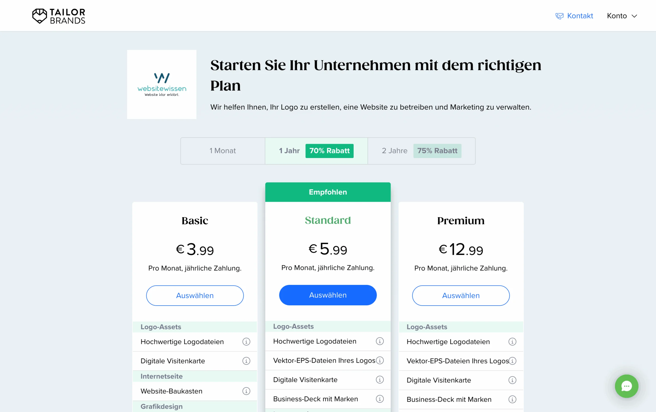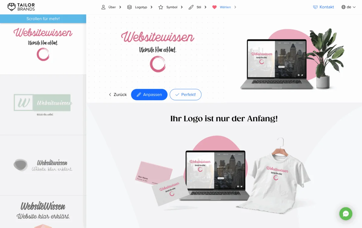 - Tailor Brands (Note 2,2): Logo-Generator mit kompletter Branding-Plattform