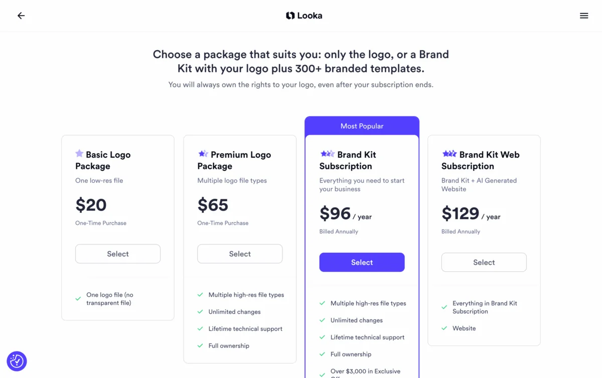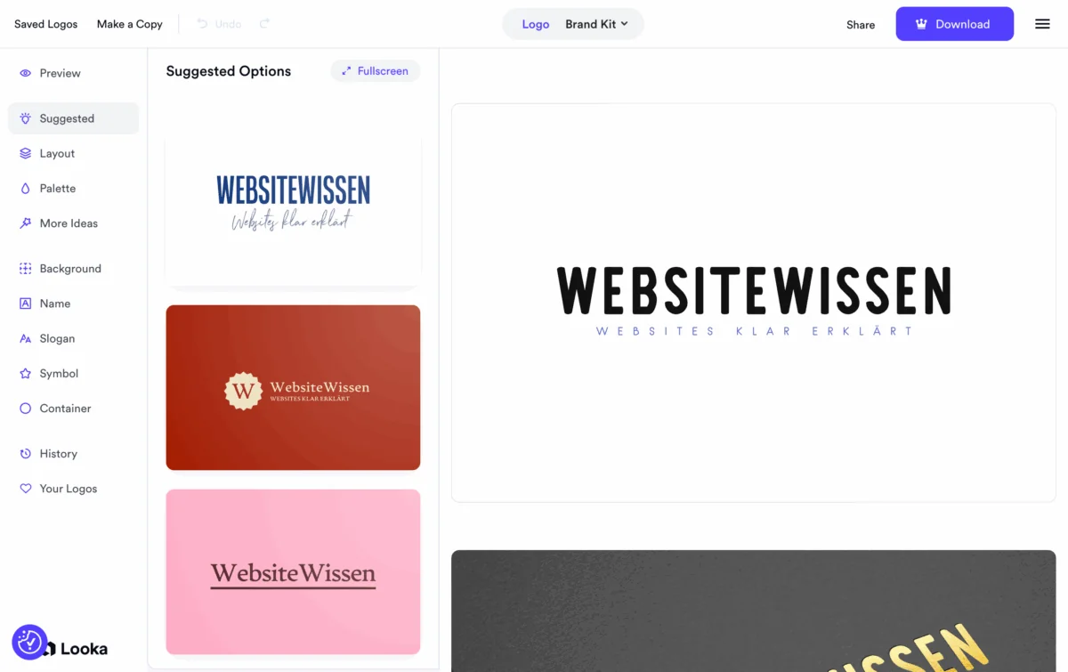 - Looka (Note 2,1): Flexible Personalisierung und Brand-Kit im Abo