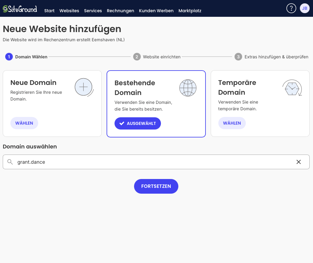 Du kannst auch eine bestehende Website zu SiteGround migrieren und eine bestehende Domain umziehen. Einige Premium-Funktionen (CDN, Site-Scanner oder stündliches Backup) sind allerdings nur kostenpflichtig zubuchbar.