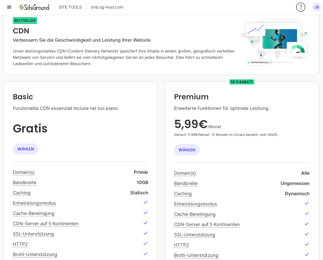Auf der anderen Seite können die SiteGround-Funktionen jedoch etwas eingeschränkt wirken, wenn du bei deinem WordPress-Projekt viele individuelle Einstellungen vornehmen möchtest. Manche Profi-Features wie spezialisierte Entwickler-Tools oder ein integriertes CDN sind nur in den höheren Tarifen oder gar nicht enthalten.