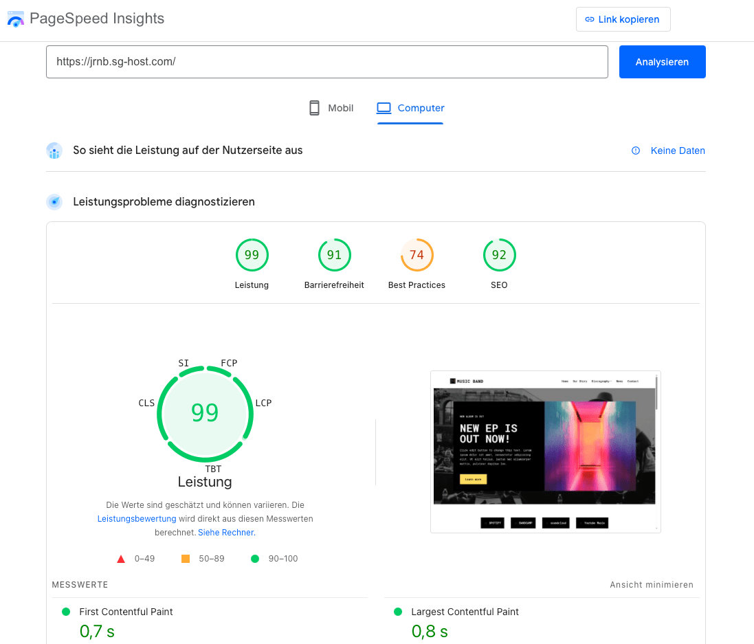 | Schnelle Ladezeiten (Gewichtung: 20%) | 24 von 25 Punkten |