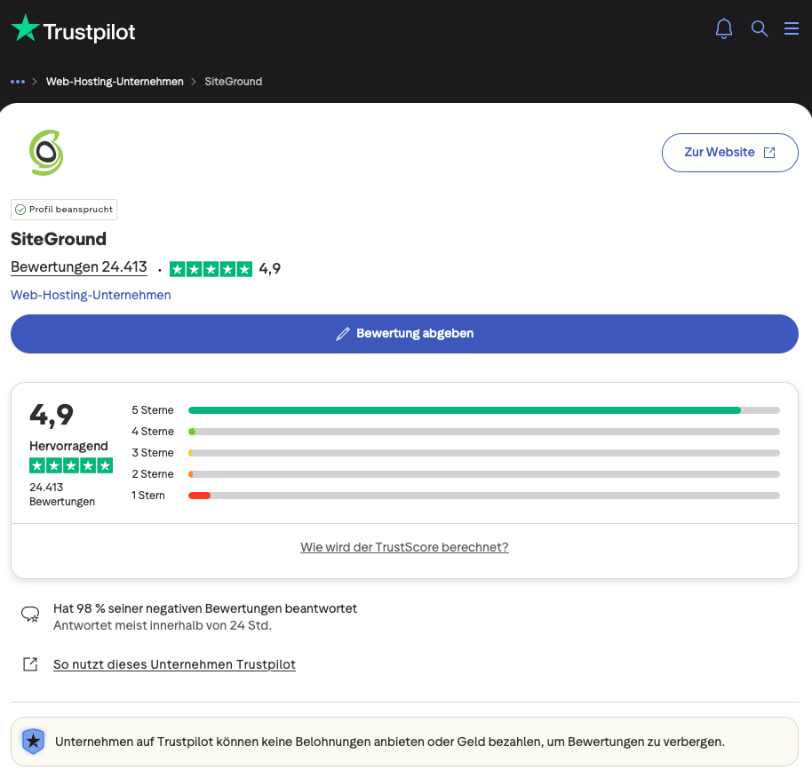 Wie kommt die Note 1,4 für SiteGround WordPress-Hosting zustande?
